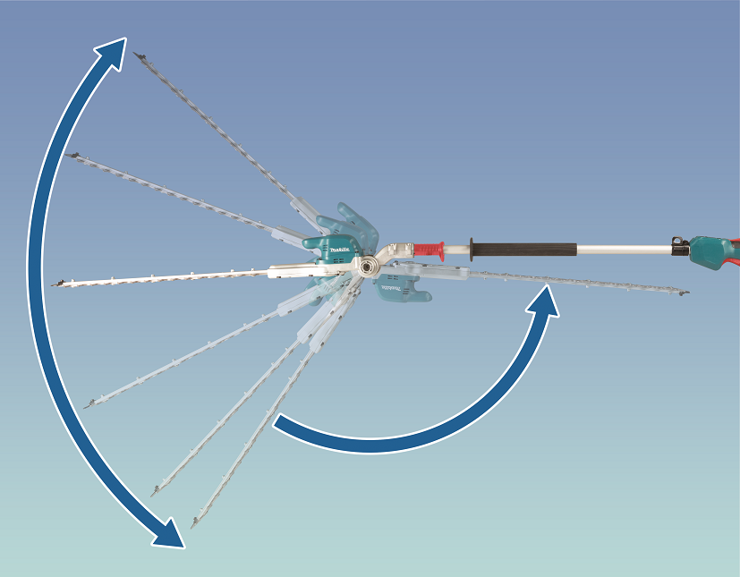 • Speciální tvar nožů umožňující lepší zachycení větví, díky nízkému odporu i výrazně delší chod na jedno nabití akumulátoru a vysokou rychlost řezu
