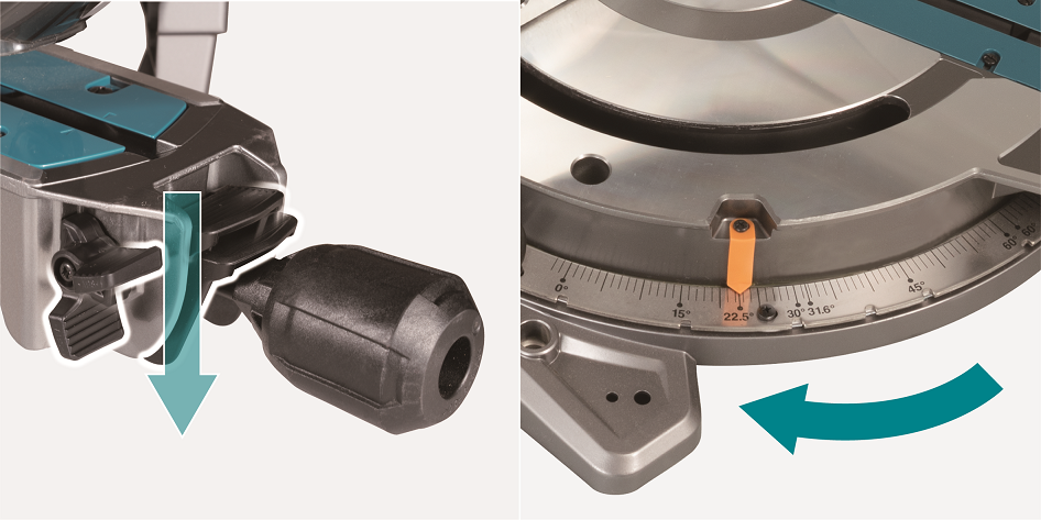 • Nové řešení nastavení pokosového/úkového úhlu pro pohodlnou práci