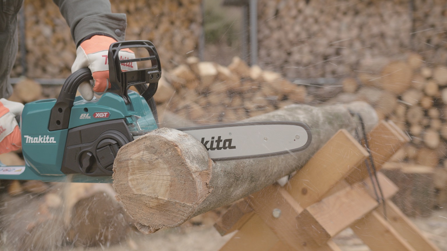 • Lehká a přitom silná pila 350 mm se zadní rukojetí srovnatelná s benzinovou pilou 35 cc
