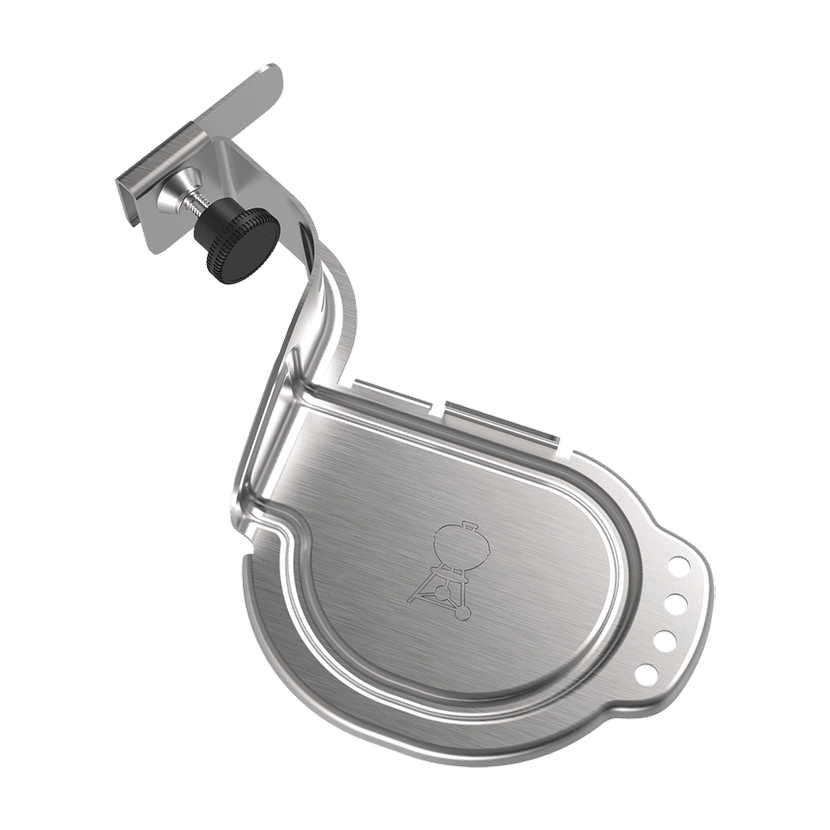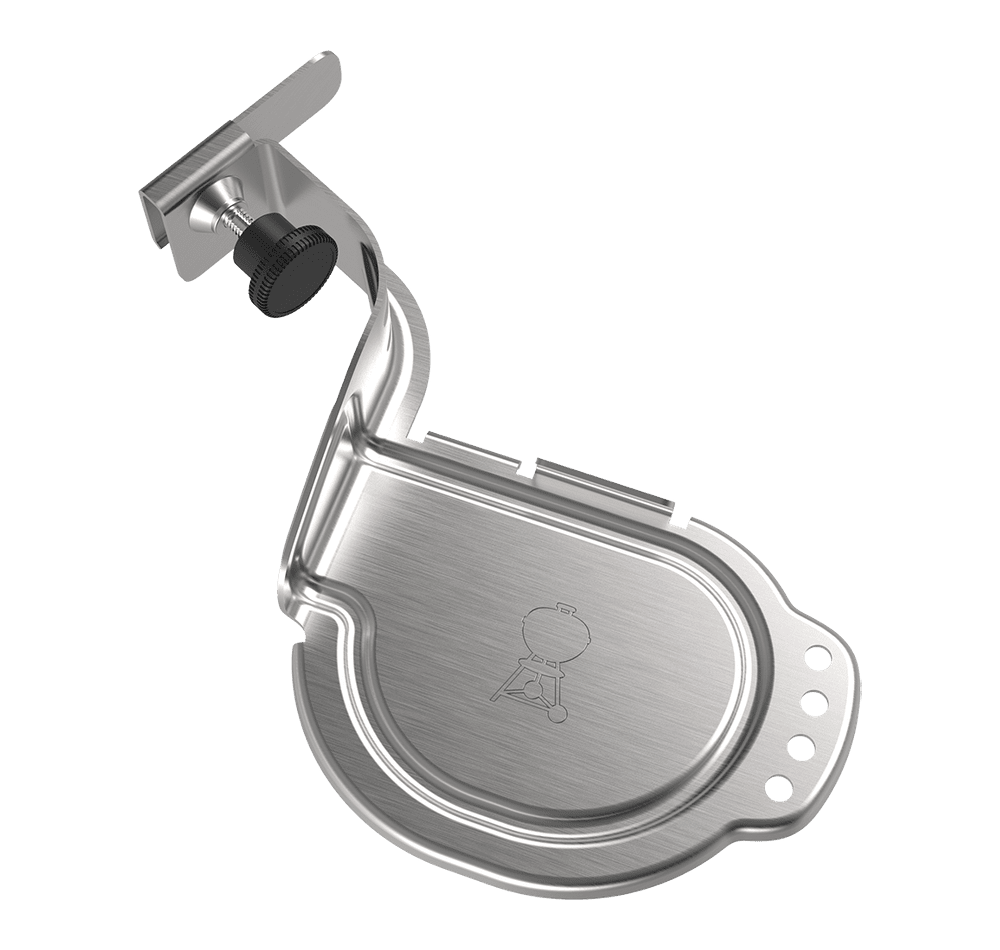 Držák na iGrill umožňuje snadné umístění sondy iGrill (dodávána samostatně) na rukojeť Vašeho grilu na dřevěné uhlí. Jehly iGrill lze uchytit do držáku, a zajistit tak bezpečné a pohodlné skladování.