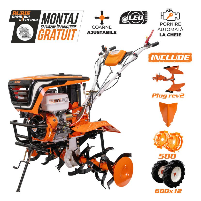 Profesionální motorový kypřič RURIS 918ACCAje vybaven univerzálním motorem o výkonu 18 HP a kypřicími noži s nastavitelnou šířkou od 750 mm do 1100 mm. Díky výkonnému motoru, převodovce 2 vpřed + 1 vzad a kuželovému převodu je profesionální kultivátor RURIS 918ACC ideálním strojem pro přepravu s přívěsem o hmotnosti 1000 kg. Pro snadnější startování je kultivátor RURIS 918ACCA RURIS 918ACCAvybaven systémem automatického startování pomocí klíče. Řadicí páka je navíc umístěna v úrovni rukou, což usnadňuje volbu požadovaného převodového stupně. Další výhodou je, že profesionální motorová sekačka RURIS 918ACC je vybavena systémem LED osvětlení, který umožňuje její použití i za zhoršené viditelnosti nebo po setmění. Skříň převodovky profesionální sekačky RURIS 918ACC nevyžaduje žádnou zvláštní údržbu a lze ji používat na všech typech půdy. Je vyrobena z tvárné litiny, odolné proti nárazům a mechanickému opotřebení.